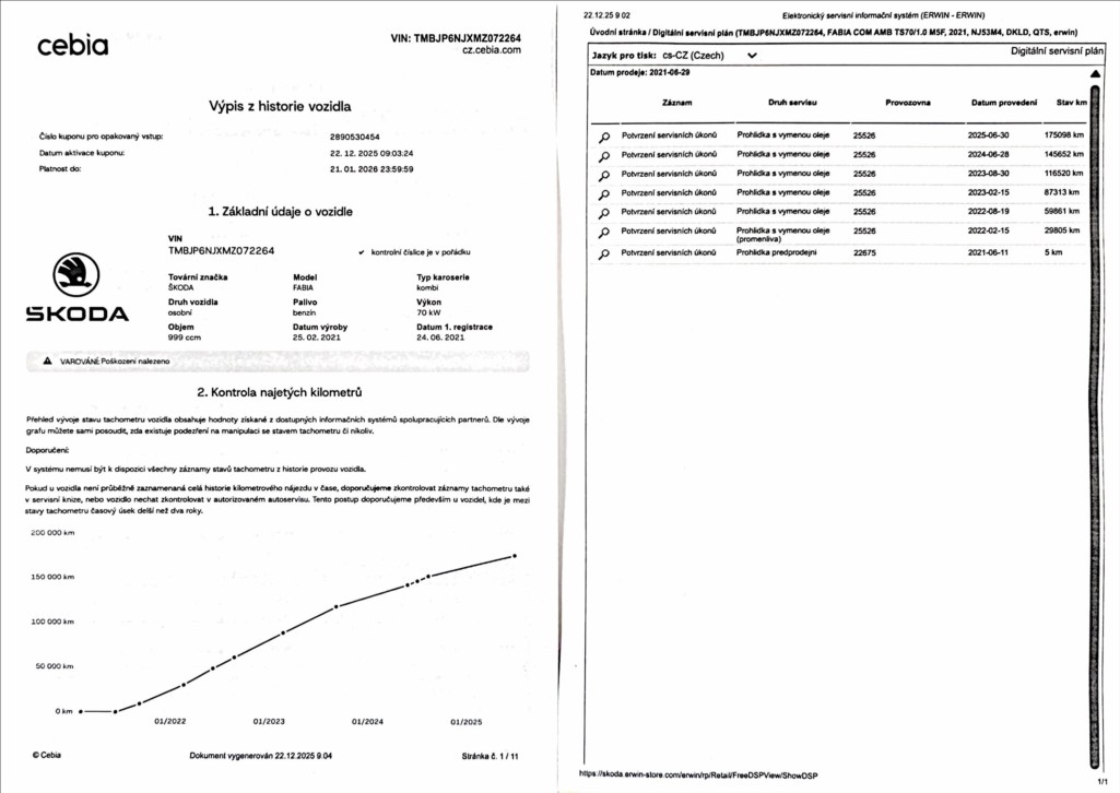 ověření Cebia. Koupeno nové v ČR,