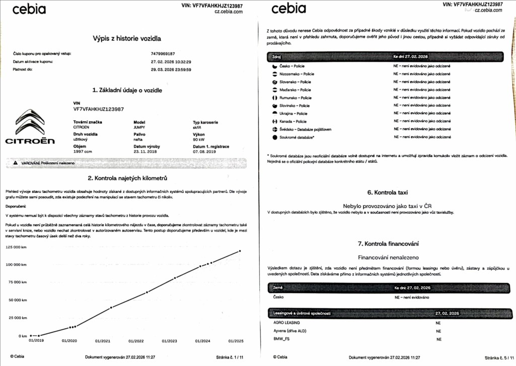 ověření Cebia. Koupeno nové v ČR,