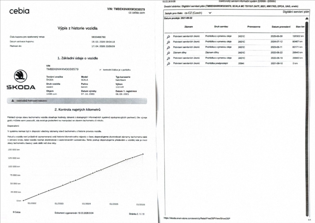 ověření Cebia. Koupeno nové v ČR,