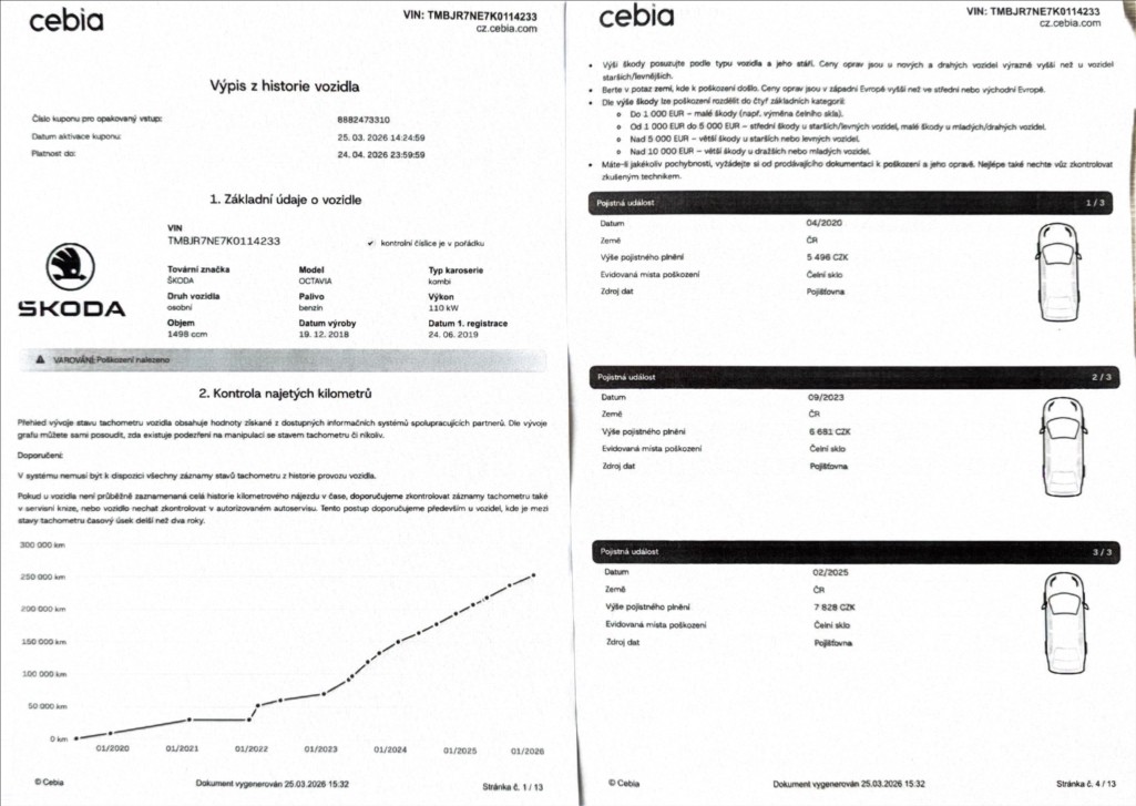 ověření Cebia. Koupeno nové v ČR,